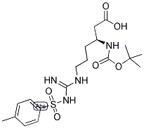 BOC-N-OMEGA-TOSYL-L-BETA-HOMOARGININE; BOC-BETA-HOARG(TOS)-OH; BOC-BETA-HOMOARG(TOS)-OH; BOC-ARG(TOS)-(C*CH2)OH; N-BETA-BOC-N-OMEGA-TOSYL-BETA-HOMOARGININE; N-BETA-BOC-N-OMEGA-TOSYL-L-BETA-HOMOARGININE; N-BETA-T-BUTOXYCARBONYL-N-OMEGA-(P-TOLUENESULFONYL)-L-BETA-HOMOARGININE; (3S)-6-{[(1E)-amino{[(4-methylphenyl)sulfonyl]amino}methylidene]amino}-3-[(tert-butoxycarbonyl)amino]hexanoic acid