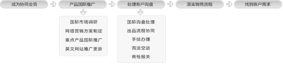 我们拥有一批专业且经验丰富的出口服务人员,以及该团队自成立以来所积累的丰富客户资源和广泛的出口销售经验,可为您一站式的产品展示、营销推广、询盘处理及手续处理、商检报关等全系列服务。